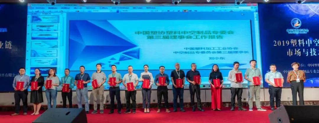 中國(guó)塑協(xié)和中空制品專委會(huì)第四屆理事會(huì)成員為新加入的會(huì)員頒發(fā)證書(shū)。