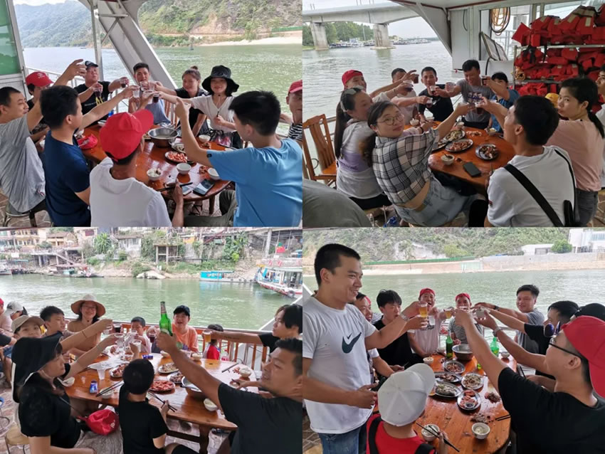 中午,我們前往清遠(yuǎn)北江,泛舟于江渚之上,一覽北江景色。豐盛的午餐就安排在北江游船上,江面波光粼粼,清風(fēng)徐來,甚是愜意。