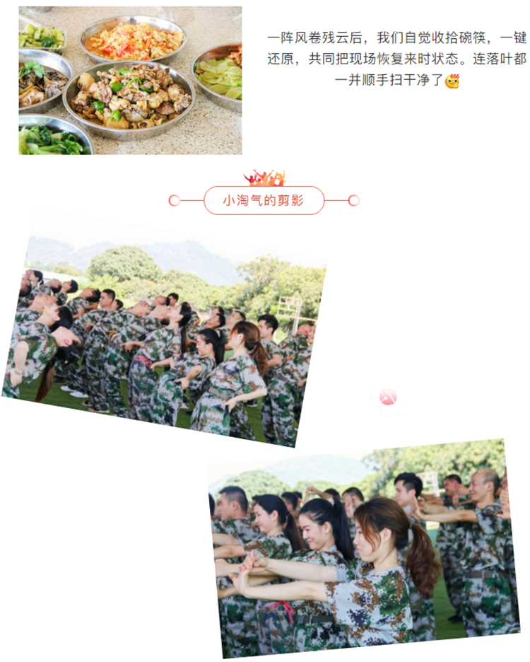 不同以往的圍餐,今年的團建采取“自己動手豐衣足食”的模式,開啟自給自足模式,“吃貨群體”并非浪得虛名,說起吃,自認(rèn)沒人比我們更專注,同樣的食材硬是做出不同的花招,他做紅燒魚,我就做糖醋,你做燜雞,我就做辣子雞,雞蛋都可以做出蛋炒飯、西紅柿炒蛋、蛋花湯、蒸蛋、蔥花蛋,每隊都有那么幾個掌勺大神,其他人也沒有袖手旁觀,各自充當(dāng)小兵,燒柴洗菜、切菜洗鍋、有人洗菜,有人專門刷鍋,有人專門負(fù)責(zé)添柴、有人專門負(fù)責(zé)運送材料... 不一會功夫八菜一湯齊上桌,不得不佩服我們在吃方面的協(xié)調(diào)性和高度配合度。