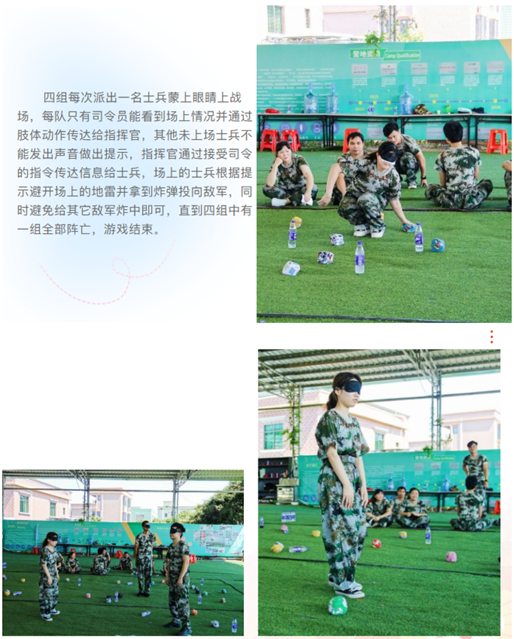 現(xiàn)場呈現(xiàn)出各種笑皆非的名場面,司令官做出的動作指揮官理解錯,司令官下達左轉(zhuǎn),指揮官的命令卻是右轉(zhuǎn),有時指揮官的命令對了,士兵卻不套路出牌做出了完全錯誤的行動,也經(jīng)常出現(xiàn)了信號失聯(lián),指揮官吼叫半天士兵呆滯,或者司令官指揮半天,指揮官一竅不通,指揮官自由發(fā)揮添加自己的一些內(nèi)容、有的剛上場只走了一步就踩雷犧牲,有的躲過了地雷卻沒躲過敵人的炸彈,也有的士兵收到投彈指令遲遲不下手給人先下手為強...更有場下未上場的士兵看到如此場面紛紛急如熱鍋上的螞蟻一般恨不得自己上場指揮作戰(zhàn)。