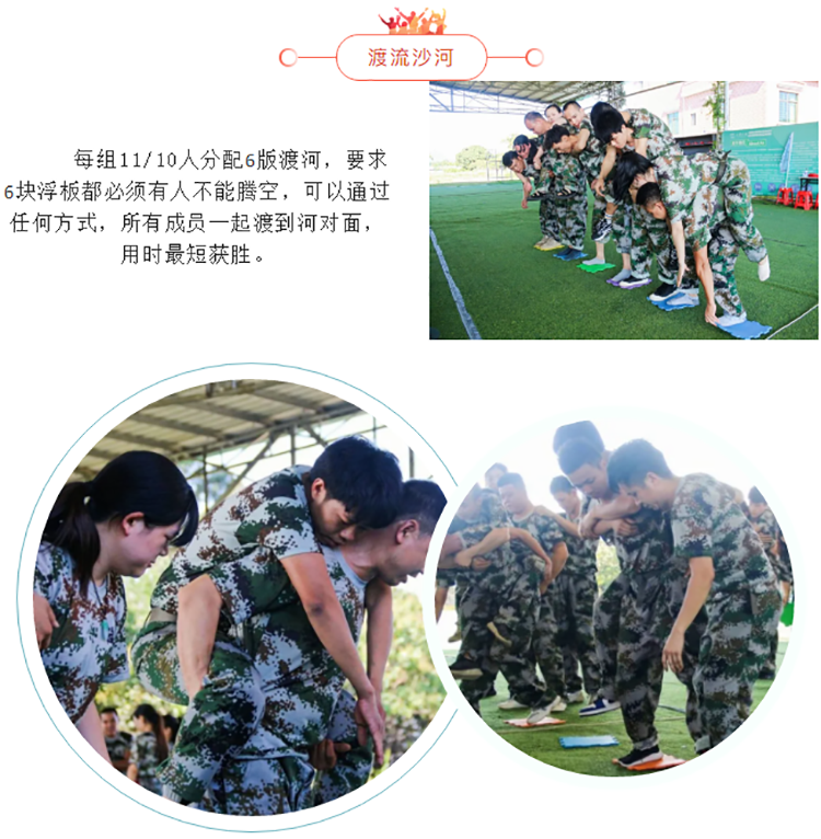這是一個沒有捷徑的游戲,我們嘗試過不管是所有人都參與渡河,還是選擇背人的方式,均不輕松,四組的用時也差不多,渡河版太少,要渡的人太多,世上本就沒有簡單又便捷的事,渡河項目,不是為了讓我們?nèi)スタ隧椖康碾y關(guān),也不是需要去研究策略和技巧,考驗的是讓我們學(xué)會如何能萬眾一心的在面對波濤洶涌的河流,人多版少的情況下能夠不放棄不拋棄的全員咬牙度過,同時明白一個殘酷的真相,那便是,這世界上本沒有什么捷徑可以走。