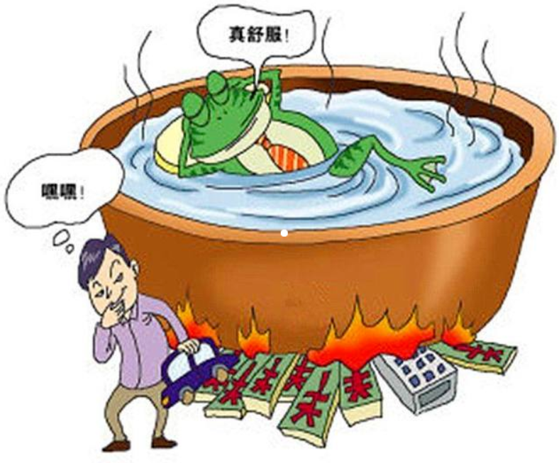 如果把一只青蛙扔到開水中,青蛙會(huì)馬上跳出來(lái)。但如果把一只青蛙放入涼水中逐漸加熱,青蛙就會(huì)在不知不覺中失去跳躍的能力,直到死去。