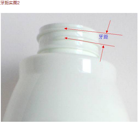 接下來我們還要來認(rèn)識一下很少用,但也十分重要的部份,就是牙距與牙型。 在這里先簡單的說解一下,第二篇“瓶口與瓶蓋的關(guān)系”我們會詳細(xì)解說一旦牙型、牙距不正確了,那么就配不上蓋子或是配上了也會出現(xiàn)滑牙(脫牙)或是漏液等不良情況。我們這里先認(rèn)識下牙距與測量方法,如圖