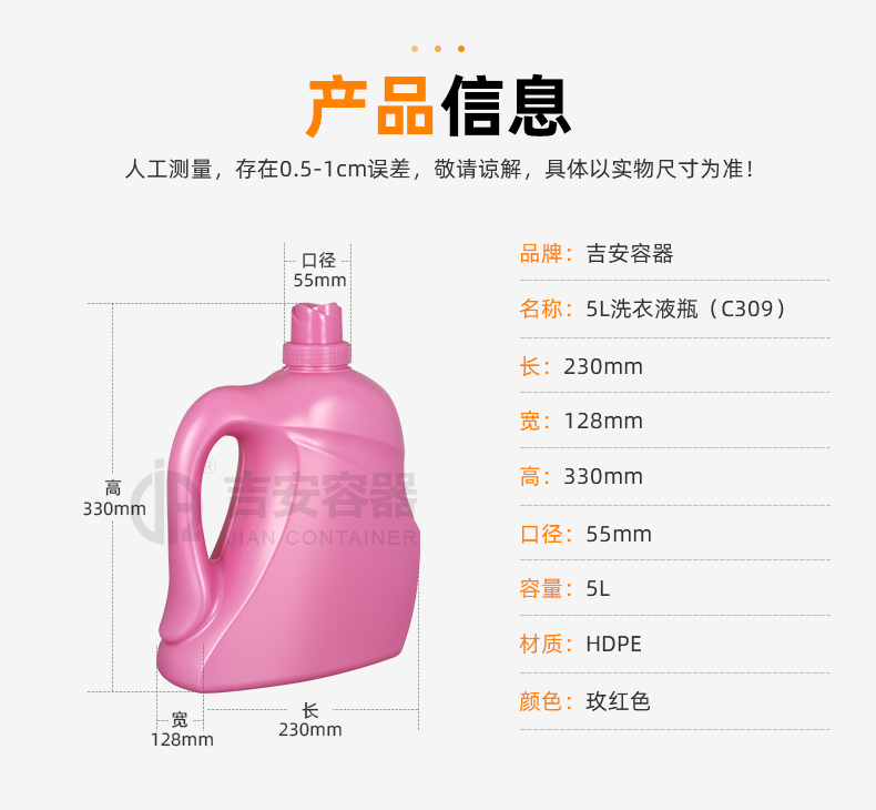 東莞市吉安包裝容器有限公司創(chuàng)立于2000年8月1日,是中國知名品牌企業(yè)。已通過ISO 9001質(zhì)量管理體系資質(zhì)認證,加入了中國中空協(xié)會,并獲得《中國知名品牌》,《國家標準合格產(chǎn)品》,《全國重合同守信用AAA級企業(yè)》,《質(zhì)量.服務.誠信AAA企業(yè)》等榮譽稱號。根據(jù)材質(zhì)的不同,我們的產(chǎn)品分為塑料容器、鐵質(zhì)容器、鋁材容器、玻璃容器、紙質(zhì)容器等五大類。按產(chǎn)品的名稱分為塑料桶、塑料瓶、包裝桶、涂料桶、機油桶、油脂桶、化工罐、膠水瓶、鐵桶、鐵罐、鋁瓶、鋁罐、阻隔瓶、高阻隔瓶等,容量從3ML至1000L多種規(guī)格,多種款式。適合包裝的產(chǎn)品包括:化學試劑、化工原料、化工助劑、飼料添加劑、油墨、油漆、樹脂農(nóng)藥、日用化學品、聚氨脂、膠粘劑,廣泛應用于化工、建筑、食品、醫(yī)療、生物等各領域。