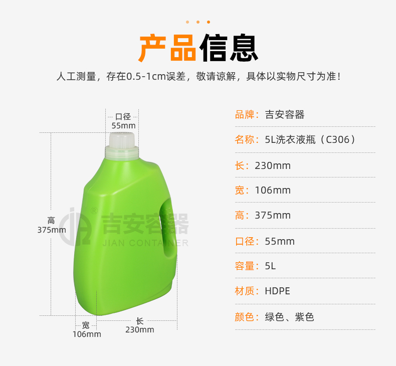 東莞市吉安包裝容器有限公司創(chuàng)立于2000年8月1日,是中國(guó)知名品牌企業(yè)。已通過(guò)ISO 9001質(zhì)量管理體系資質(zhì)認(rèn)證,加入了中國(guó)中空協(xié)會(huì),并獲得《中國(guó)知名品牌》,《國(guó)家標(biāo)準(zhǔn)合格產(chǎn)品》,《全國(guó)重合同守信用AAA級(jí)企業(yè)》,《質(zhì)量.服務(wù).誠(chéng)信AAA企業(yè)》等榮譽(yù)稱號(hào)。根據(jù)材質(zhì)的不同,我們的產(chǎn)品分為塑料容器、鐵質(zhì)容器、鋁材容器、玻璃容器、紙質(zhì)容器等五大類(lèi)。按產(chǎn)品的名稱分為塑料桶、塑料瓶、包裝桶、涂料桶、機(jī)油桶、油脂桶、化工罐、膠水瓶、鐵桶、鐵罐、鋁瓶、鋁罐、阻隔瓶、高阻隔瓶等,容量從3ML至1000L多種規(guī)格,多種款式。適合包裝的產(chǎn)品包括:化學(xué)試劑、化工原料、化工助劑、飼料添加劑、油墨、油漆、樹(shù)脂農(nóng)藥、日用化學(xué)品、聚氨脂、膠粘劑,廣泛應(yīng)用于化工、建筑、食品、醫(yī)療、生物等各領(lǐng)域。