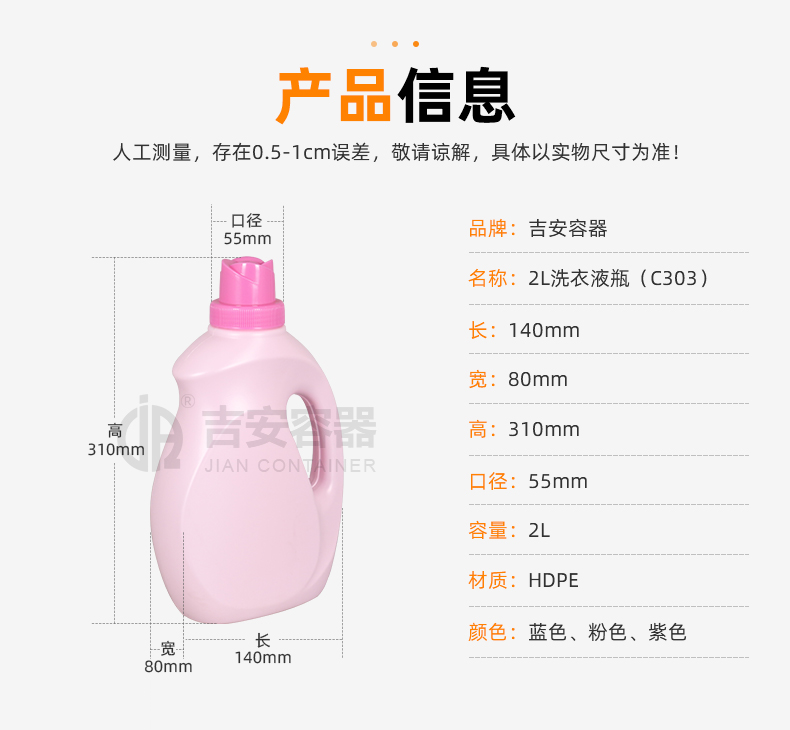 東莞市吉安包裝容器有限公司創(chuàng)立于2000年8月1日,是中國知名品牌企業(yè)。已通過ISO 9001質(zhì)量管理體系資質(zhì)認證,加入了中國中空協(xié)會,并獲得《中國知名品牌》,《國家標準合格產(chǎn)品》,《全國重合同守信用AAA級企業(yè)》,《質(zhì)量.服務.誠信AAA企業(yè)》等榮譽稱號。根據(jù)材質(zhì)的不同,我們的產(chǎn)品分為塑料容器、鐵質(zhì)容器、鋁材容器、玻璃容器、紙質(zhì)容器等五大類。按產(chǎn)品的名稱分為塑料桶、塑料瓶、包裝桶、涂料桶、機油桶、油脂桶、化工罐、膠水瓶、鐵桶、鐵罐、鋁瓶、鋁罐、阻隔瓶、高阻隔瓶等,容量從3ML至1000L多種規(guī)格,多種款式。適合包裝的產(chǎn)品包括:化學試劑、化工原料、化工助劑、飼料添加劑、油墨、油漆、樹脂農(nóng)藥、日用化學品、聚氨脂、膠粘劑,廣泛應用于化工、建筑、食品、醫(yī)療、生物等各領域。