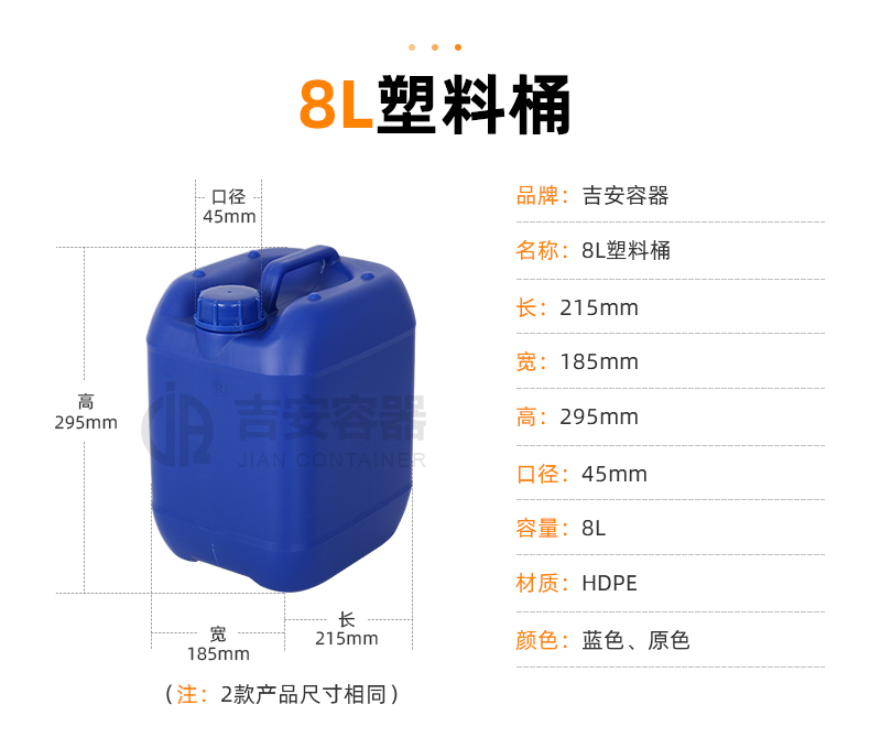 小口塑料桶:采用全新聚乙烯原料吹塑工藝制作而成,具有耐腐蝕,耐酸堿特性,小口設(shè)計(jì)密封性能強(qiáng),廣泛應(yīng)用于化工、清潔、食品、添加劑、汽車等各行業(yè)液體包裝。
