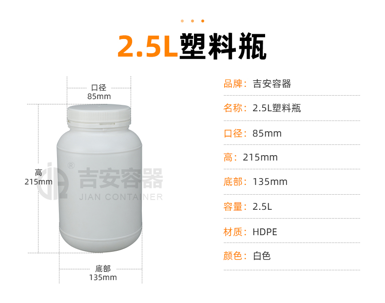 東莞市吉安包裝容器有限公司創(chuàng)立于2000年8月1日,是中國知名品牌企業(yè)。已通過ISO 9001質量管理體系資質認證,加入了中國中空協(xié)會,并獲得《中國知名品牌》,《國家標準合格產(chǎn)品》,《全國重合同守信用AAA級企業(yè)》,《質量.服務.誠信AAA企業(yè)》等榮譽稱號。根據(jù)材質的不同,我們的產(chǎn)品分為塑料容器、鐵質容器、鋁材容器、玻璃容器、紙質容器等五大類。按產(chǎn)品的名稱分為塑料桶、塑料瓶、包裝桶、涂料桶、機油桶、油脂桶、化工罐、膠水瓶、鐵桶、鐵罐、鋁瓶、鋁罐、阻隔瓶、高阻隔瓶等,容量從3ML至1000L多種規(guī)格,多種款式。適合包裝的產(chǎn)品包括:化學試劑、化工原料、化工助劑、飼料添加劑、油墨、油漆、樹脂農(nóng)藥、日用化學品、聚氨脂、膠粘劑,廣泛應用于化工、建筑、食品、醫(yī)療、生物等各領域。