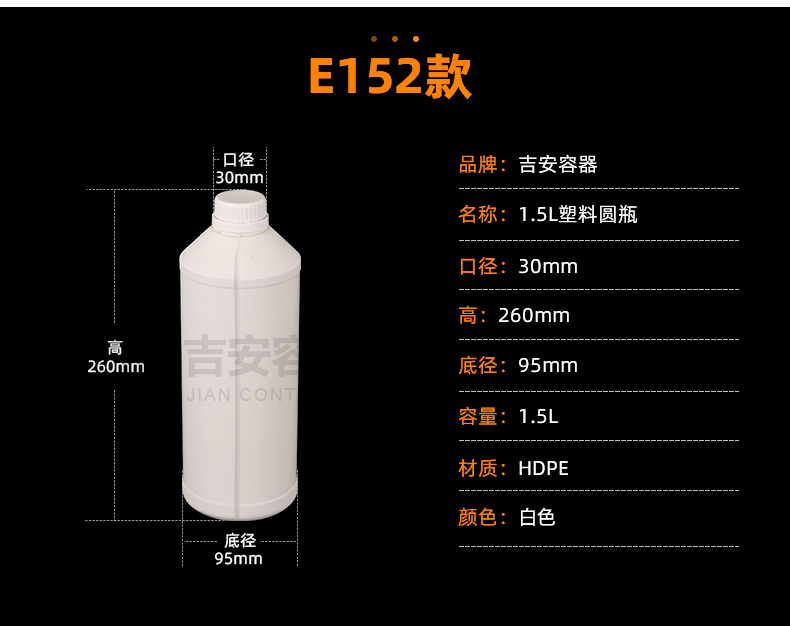 東莞市吉安包裝容器有限公司創(chuàng)立于2000年8月1日,是中國(guó)知名品牌企業(yè)。已通過(guò)ISO 9001質(zhì)量管理體系資質(zhì)認(rèn)證,加入了中國(guó)中空協(xié)會(huì),并獲得《中國(guó)知名品牌》,《國(guó)家標(biāo)準(zhǔn)合格產(chǎn)品》,《全國(guó)重合同守信用AAA級(jí)企業(yè)》,《質(zhì)量.服務(wù).誠(chéng)信AAA企業(yè)》等榮譽(yù)稱號(hào)。根據(jù)材質(zhì)的不同,我們的產(chǎn)品分為塑料容器、鐵質(zhì)容器、鋁材容器、玻璃容器、紙質(zhì)容器等五大類。按產(chǎn)品的名稱分為塑料桶、塑料瓶、包裝桶、涂料桶、機(jī)油桶、油脂桶、化工罐、膠水瓶、鐵桶、鐵罐、鋁瓶、鋁罐、阻隔瓶、高阻隔瓶等,容量從3ML至1000L多種規(guī)格,多種款式。適合包裝的產(chǎn)品包括:化學(xué)試劑、化工原料、化工助劑、飼料添加劑、油墨、油漆、樹脂農(nóng)藥、日用化學(xué)品、聚氨脂、膠粘劑,廣泛應(yīng)用于化工、建筑、食品、醫(yī)療、生物等各領(lǐng)域。