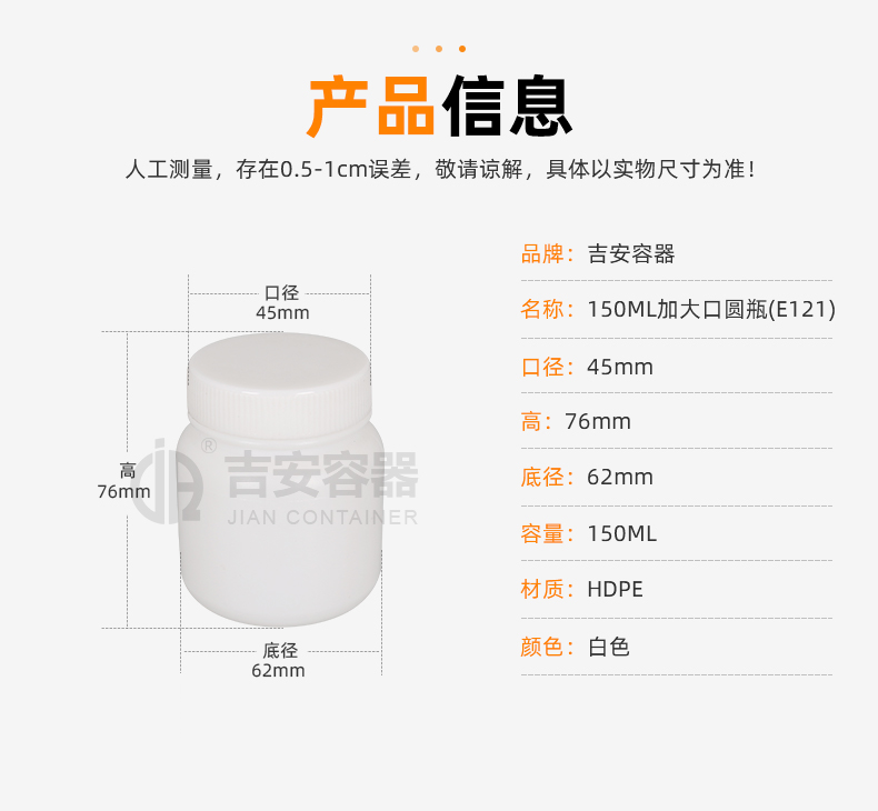 | 品名:150ML加大口圓瓶(E121) | |