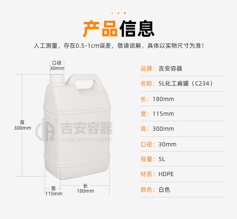 塑料扁罐采用HDPE原材料吹塑而成,具有良好的耐酸堿性及密封性,方形設(shè)計方便堆放,不占用空間,美觀實用。具備不變形,使用方便等特征,可根據(jù)客戶需求做印刷及貼膜,產(chǎn)品適用于尿素、機(jī)油、汽油、清洗劑、化工助劑、食品添加劑等液體包裝。