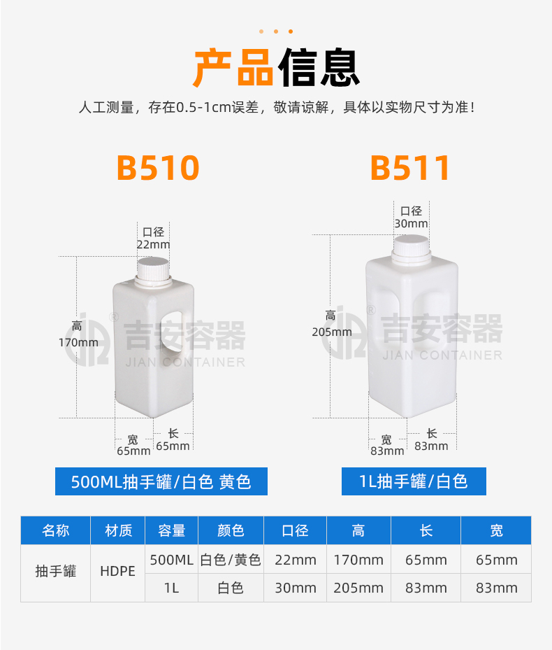 | 容量:1000ml | 材質(zhì):罐蓋-PP,罐身-HDPE |