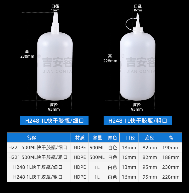 尖嘴瓶適用行業(yè)廣泛,多用于膠水包裝、眼藥水包裝、食品調(diào)料包裝,因其尖嘴特點,具備方便滴膠,操作時流量可控可調(diào),使用方便。