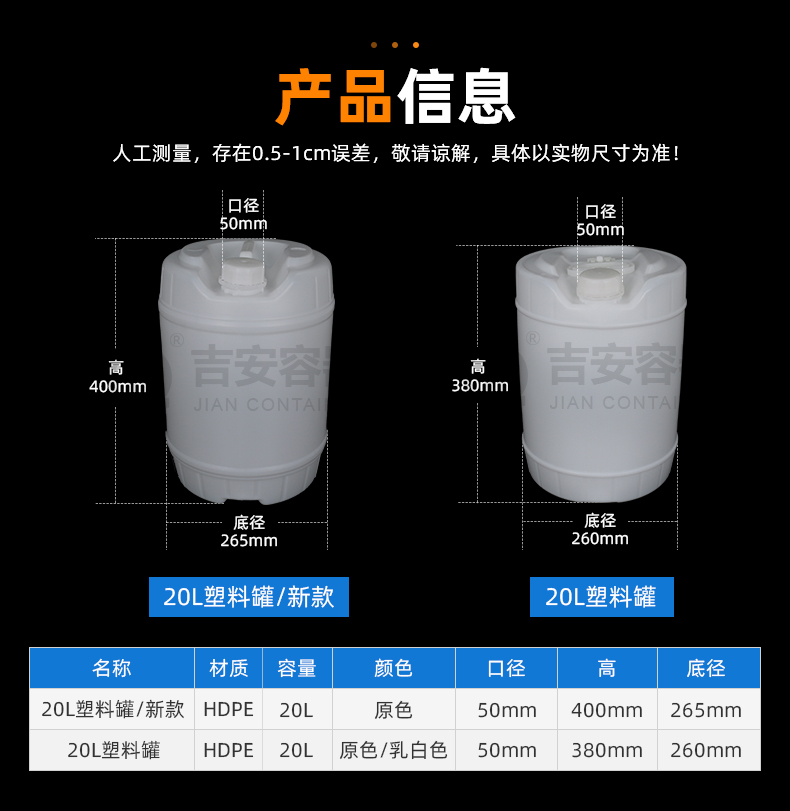 小口塑料桶:采用全新聚乙烯原料吹塑工藝制作而成,具有耐腐蝕,耐酸堿特性,小口設計密封性能強,廣泛應用于化工、清潔、食品、添加劑、汽車等各行業(yè)液體包裝。