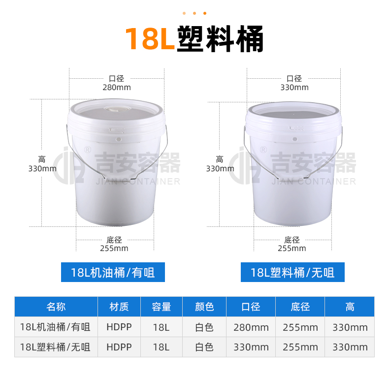 東莞市吉安包裝容器有限公司創(chuàng)立于2000年8月1日,是中國知名品牌企業(yè)。已通過ISO 9001質(zhì)量管理體系資質(zhì)認證,加入了中國中空協(xié)會,并獲得《中國知名品牌》,《國家標準合格產(chǎn)品》,《全國重合同守信用AAA級企業(yè)》,《質(zhì)量.服務(wù).誠信AAA企業(yè)》等榮譽稱號。根據(jù)材質(zhì)的不同,我們的產(chǎn)品分為塑料容器、鐵質(zhì)容器、鋁材容器、玻璃容器、紙質(zhì)容器等五大類。按產(chǎn)品的名稱分為塑料桶、塑料瓶、包裝桶、涂料桶、機油桶、油脂桶、化工罐、膠水瓶、鐵桶、鐵罐、鋁瓶、鋁罐、阻隔瓶、高阻隔瓶等,容量從3ML至1000L多種規(guī)格,多種款式。適合包裝的產(chǎn)品包括:化學試劑、化工原料、化工助劑、飼料添加劑、油墨、油漆、樹脂農(nóng)藥、日用化學品、聚氨脂、膠粘劑,廣泛應(yīng)用于化工、建筑、食品、醫(yī)療、生物等各領(lǐng)域。