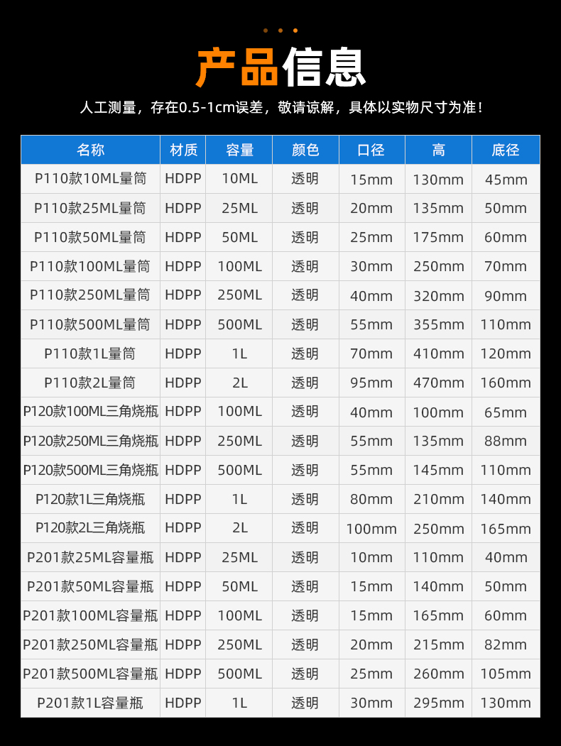 | 品名:500ml塑料量筒(P110) | |