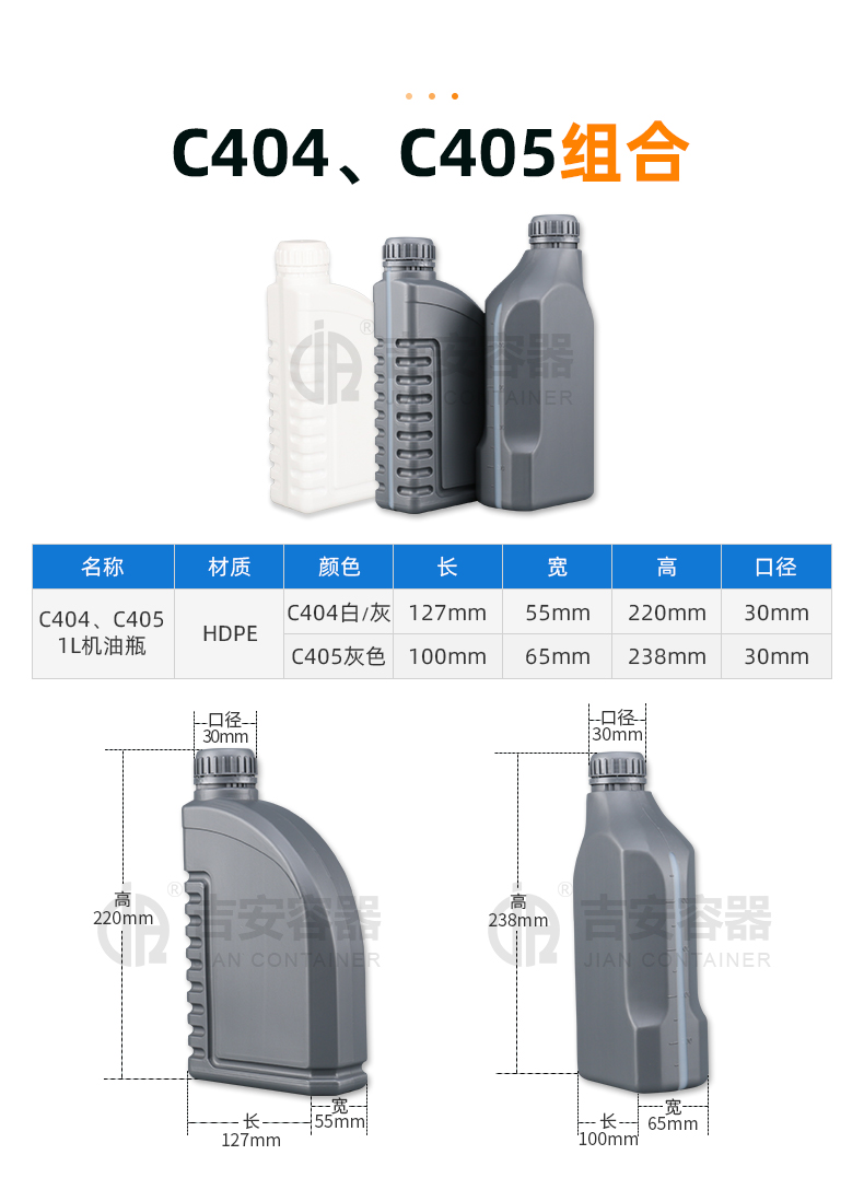 東莞市吉安包裝容器有限公司創(chuàng)立于2000年8月1日,是中國知名品牌企業(yè)。已通過ISO 9001質(zhì)量管理體系資質(zhì)認(rèn)證,加入了中國中空協(xié)會(huì),并獲得《中國知名品牌》,《國家標(biāo)準(zhǔn)合格產(chǎn)品》,《全國重合同守信用AAA級企業(yè)》,《質(zhì)量.服務(wù).誠信AAA企業(yè)》等榮譽(yù)稱號。根據(jù)材質(zhì)的不同,我們的產(chǎn)品分為塑料容器、鐵質(zhì)容器、鋁材容器、玻璃容器、紙質(zhì)容器等五大類。按產(chǎn)品的名稱分為塑料桶、塑料瓶、包裝桶、涂料桶、機(jī)油桶、油脂桶、化工罐、膠水瓶、鐵桶、鐵罐、鋁瓶、鋁罐、阻隔瓶、高阻隔瓶等,容量從3ML至1000L多種規(guī)格,多種款式。適合包裝的產(chǎn)品包括:化學(xué)試劑、化工原料、化工助劑、飼料添加劑、油墨、油漆、樹脂農(nóng)藥、日用化學(xué)品、聚氨脂、膠粘劑,廣泛應(yīng)用于化工、建筑、食品、醫(yī)療、生物等各領(lǐng)域。